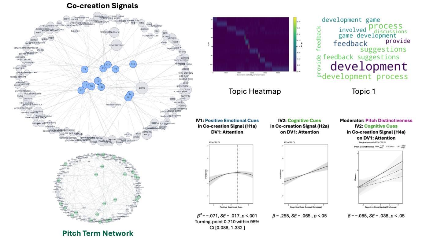 Why some of creators can pitch early-stage ideas to engage more users as co-creators rather than passive evaluators? This dissertation develops the construct of co-creation incompleteness—a strategic communication approach in which creators present ideas as sufficiently structured to convey vision yet intentionally open to invite user input. Drawing on sensemaking theory and the Emotions as Social Information (EASI) model, I theorize that co-creation incompleteness emerges from a balance of emotional intensity and cognitive clarity in early-stage pitches. I propose that moderate positive emotional cues and rich, elaborated cognitive scaffolds signal both creative vision and openness to user input, eliciting audience attention and co-creation engagement. In video game industry, I collected and analyzed 1,921 Early Access game pitches on Steam via natural language processing, linking affective and cognitive cues to user reaction. This study illuminate how creators can frame incomplete ideas to foster early user attention, developmental feedback, and collaborative innovation.